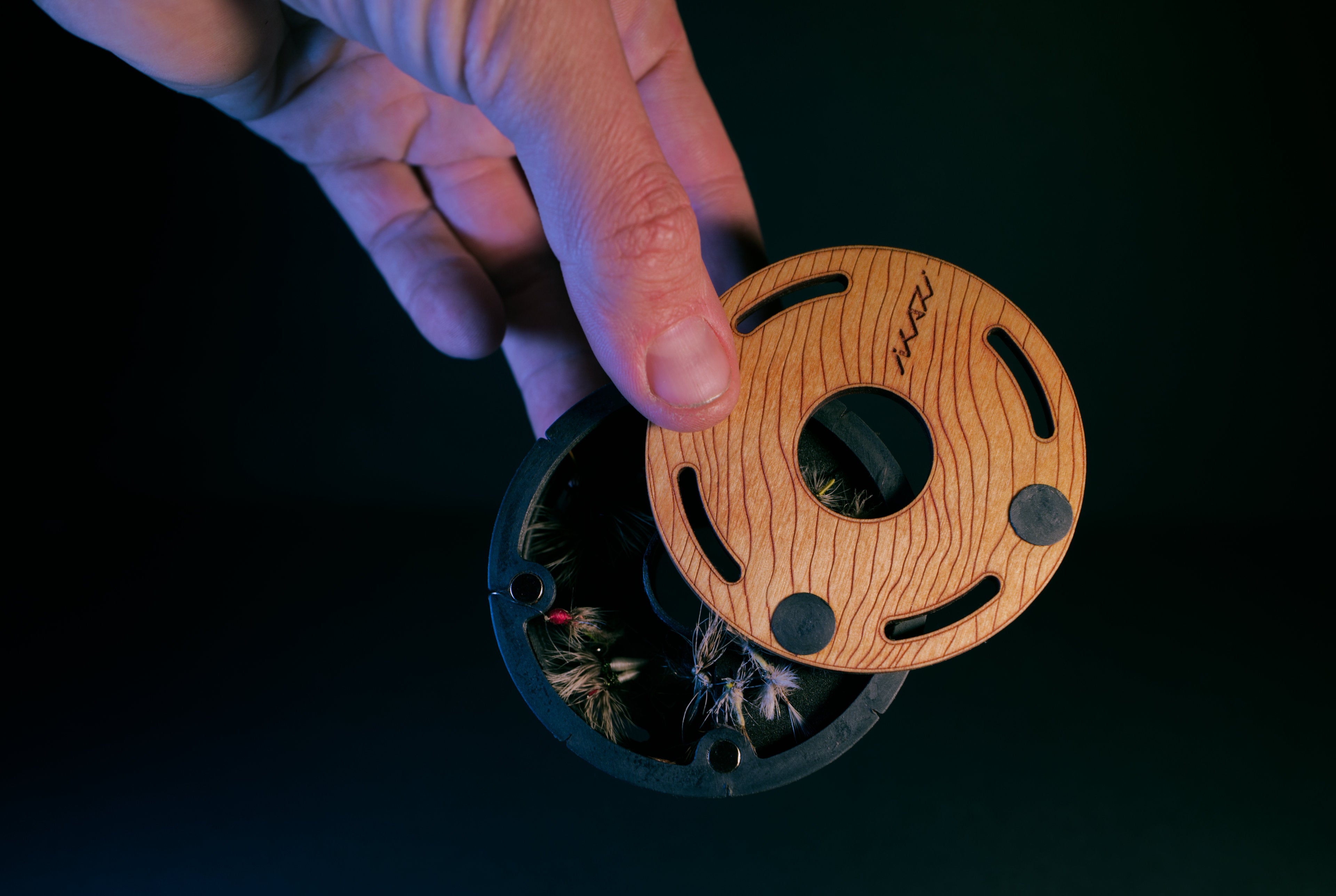magnetic fly container with line storage made specifically for Tenkara fishing.